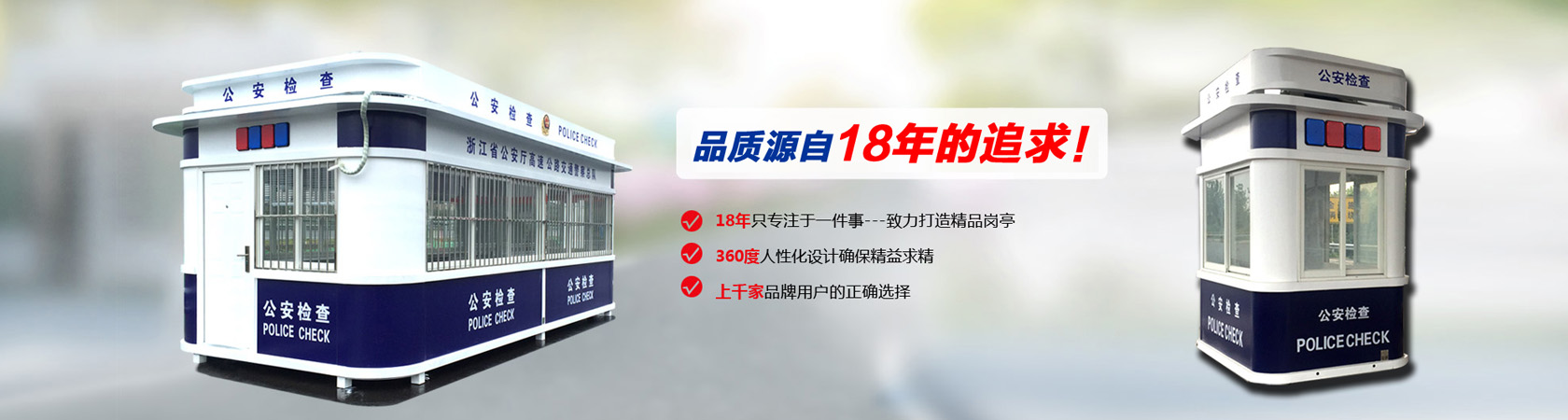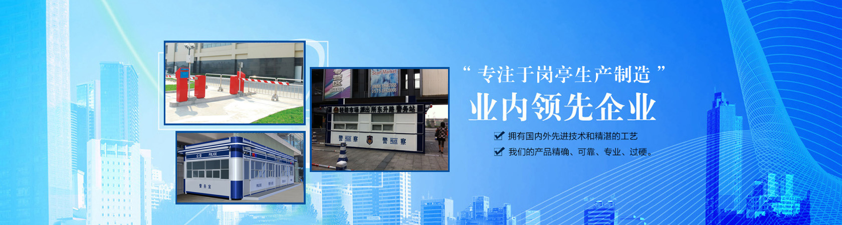 公司主要生產(chǎn)各類崗?fù)?,包括高速公路收費亭系列、治安崗?fù)ぁ⒔煌◢復(fù)?、售貨亭、公交亭、書報亭、小區(qū)崗?fù)さ?,崗?fù)げ馁|(zhì)齊全有:不銹鋼崗?fù)ぁ摻Y(jié)構(gòu)崗?fù)ぁX塑板崗?fù)ぁ⒉A復(fù)?、木制崗?fù)ぁ⒔饘俚窕ò鍗復(fù)?、PVC掛板崗?fù)さ?,適用于各政府機關(guān)、道路交通、機場港口、地產(chǎn)建筑等多個行業(yè)領(lǐng)域。